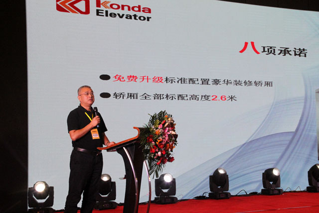 9月12日,康达电梯有限公司董事长闵文辉亲自率队参加了由江西地产协会主办、康达电梯协办的2019中国(江西)地产绿色供应链高层对接峰会,与30余家扎根江西的房地产企业高层及近三十家供应商企业高层同台论道,共同探讨房地产市场形势和相关行业发展等话题,并发表了对房地产上下游供应链的建设、维护、合作尤其是唱响电梯民族品牌等方面的独特见解。在峰会上,闵文辉向全体与会嘉宾发布了八项郑重承诺,其中包括本公司电梯产品全部升级配置豪华装修轿厢、曳引机、变频器、安全钳等七大部件全部保修五年、轿厢防护等,展现了康达电梯高水平的产品及服务能力,表达了与地产客户合作共赢的诚意。